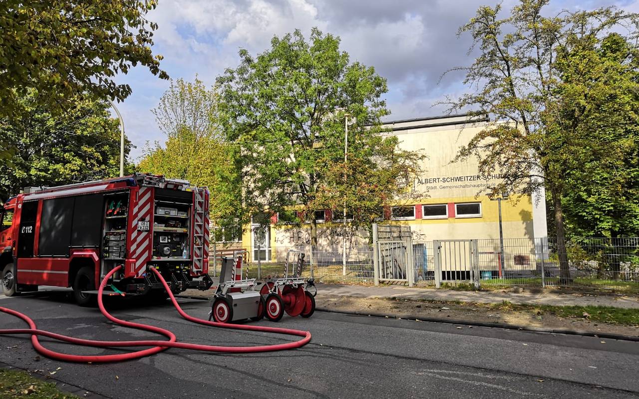 Die ehemalige Albert-Schweitzer-Hauptschule in Oberhausen hat gebrannt. Die Feuerwehr ist vor Ort auf dem Tackenberg. Sie hat die Flammen mittlerweile in den Griff bekommen, kümmert sich aber noch um Nachlöscharbeiten.