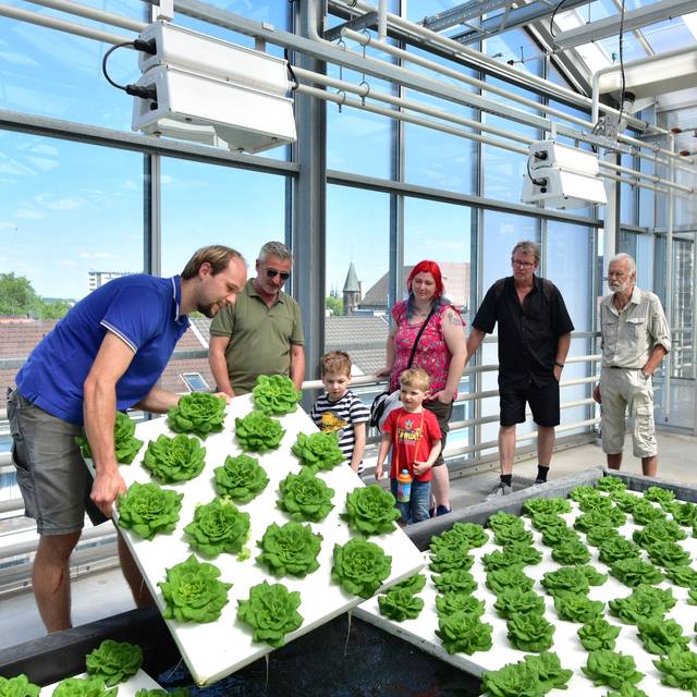 Das Dachgewächshaus auf dem Oberhausener Jobcenter lädt heute (28.8.) zum Tag der offenen Tür ein. Wer Lust hat, kann sich den "Altmarktgarten" zwischen 11 und 16 Uhr angucken und sich über die nachhaltige Lebensmittelversorgung informieren.