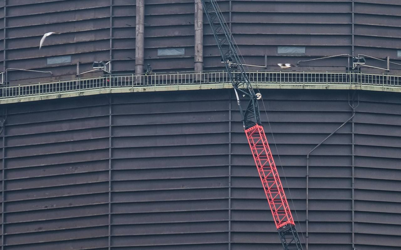 Unter anderem werden die Außentreppen komplett entfernt. Unterstützung bekommen die Industrie-Kletterer von einem 120 Meter hohen Kran. Die Arbeiten sollen in dieser Woche abgeschlossen sein. Jetzt wird das Oberhausener Wahrzeichen komplett eingerüstet, damit die Außenhülle neuen Schutz vor Rost bekommen kann. Das soll voraussichtlich das ganze Jahr lang dauern. Die Kosten für die Gasometer-Sanierung liegen bei rund 14 Millionen Euro.