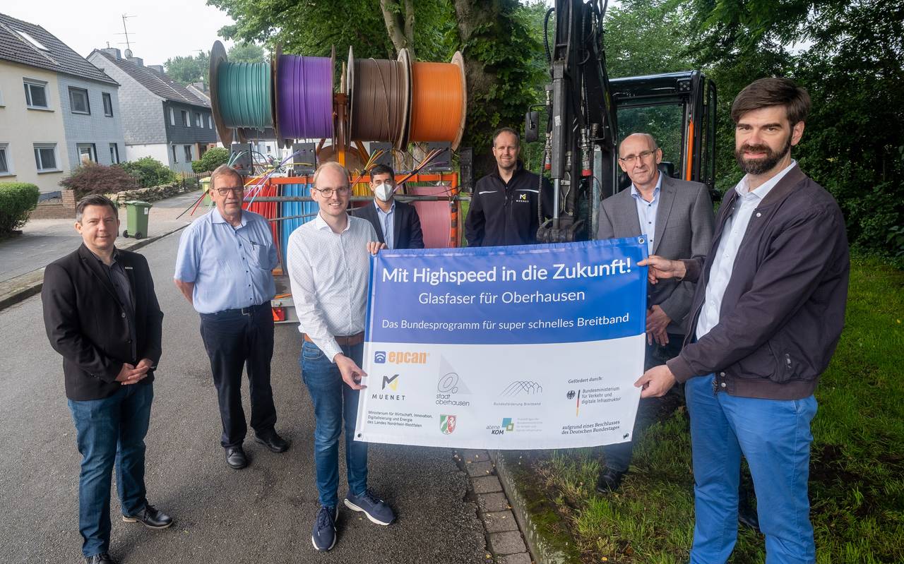In Oberhausen hat es heute den ersten Spatenstich für die Verlegung von rund 70 Kilometern Glasfaserkabel gegeben - und zwar in der Rosenstraße in Lirich. In den nächsten drei Jahren werden 564 Haushalte und 62 Unternehmen mit besonders langsamem Internet ans Glasfasernetz angeschlossen.
