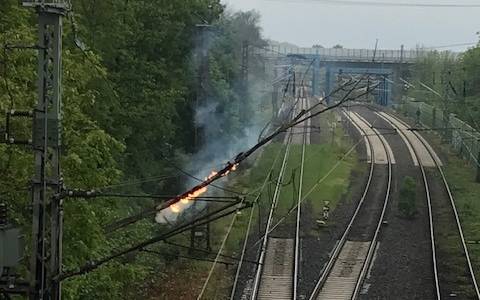 Der morsche Baum war gestern in die Oberleitung gestürzt und dabei in Brand geraten. Die Bottroper Feuerwehr musste in rund fünf Metern Höhe arbeiten. Dafür mussten die Strecke komplett gesperrt und die Oberleitung abgeschaltet und geerdet werden. Während des Einsatz zerbrach der Baum in mehrere Teile und stürzte auf die Gleise. Die brennenden Äste konnten dort gelöscht werden, heißt es. Die dreigleisige Bahnstrecke zwischen Oberhausen und Gladbeck war für mehrere Stunden gesperrt.