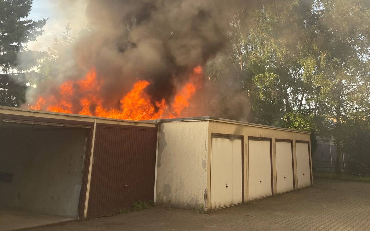 Das Feuer breitete sich auf Sträucher und Bäume in der Nähe aus, außerdem auf angrenzende Fertiggaragen. Der Rauch war so dicht, dass die Polizei einige Häuser in der Nähe sicherheitshalber evakuieren ließ. Die Feuerwehr war mit einem Löschzug mehrere Stunden im Einsatz und wurde auch von der Freiwilligen Feuerwehr unterstützt. Was oder wer das Feuer ausgelöst hat, ist zurzeit noch unklar.