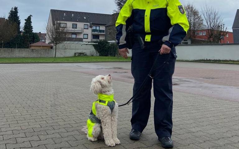 Die Polizei Oberhausen hat seit Anfang des Jahres ihren allerersten Opferschutzhund. Der Australian Sheperd / Pudel-Mix "Buddy" tröstet Opfer von Verkehrsunfällen und hilft ihnen dabei, das Erlebte besser zu verarbeiten.