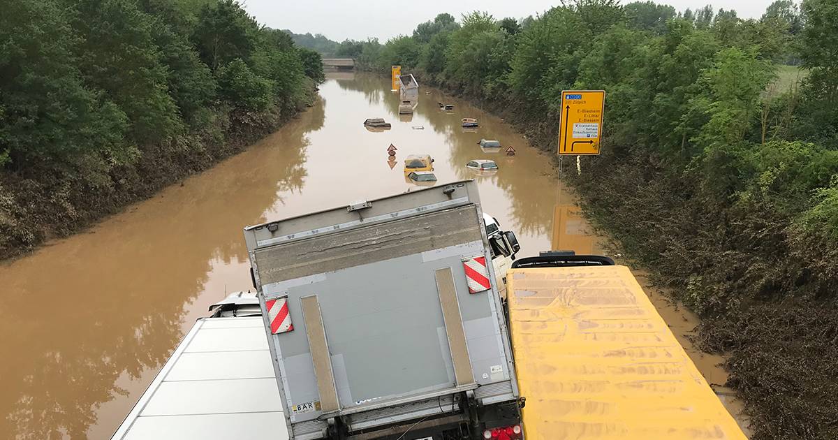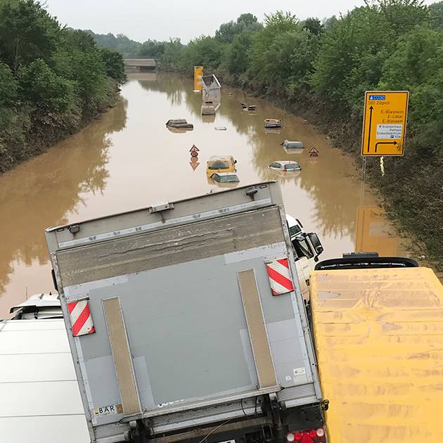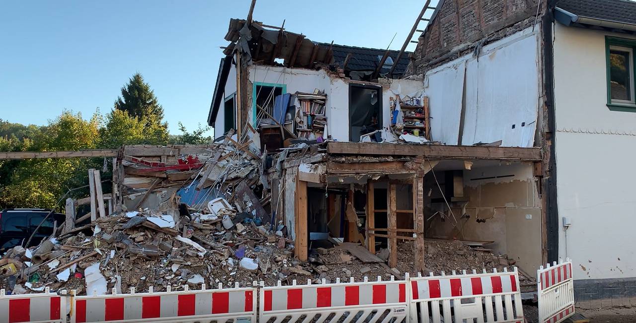 Das Ausmaß der Schäden wird allmählich deutlicher. Im besonders schwer getroffenen Erftstadt-Blessem hat ein gewaltiger Erdrutsch Gebäude, Straßen, auch einen Teil der Autobahn 1 weggespült, mehrere Menschen sind ums Leben gekommen.