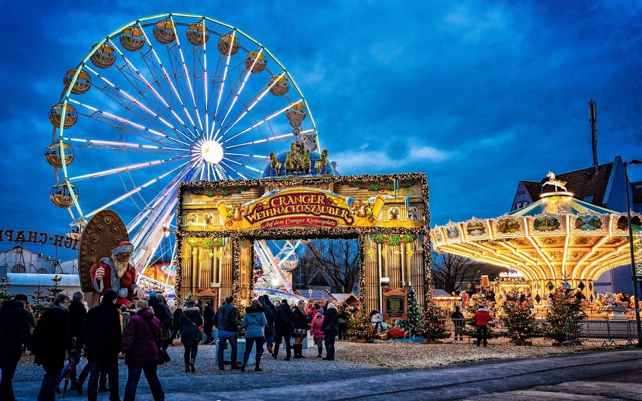 Morgen (30.12.) endet der "Cranger Weihnachtszauber 2022" in Herne mit einem großen Feuerwerk. Das Showprogramm mit fliegendem Weihnachtsmann bleibt bis einschließlich morgen bestehen.