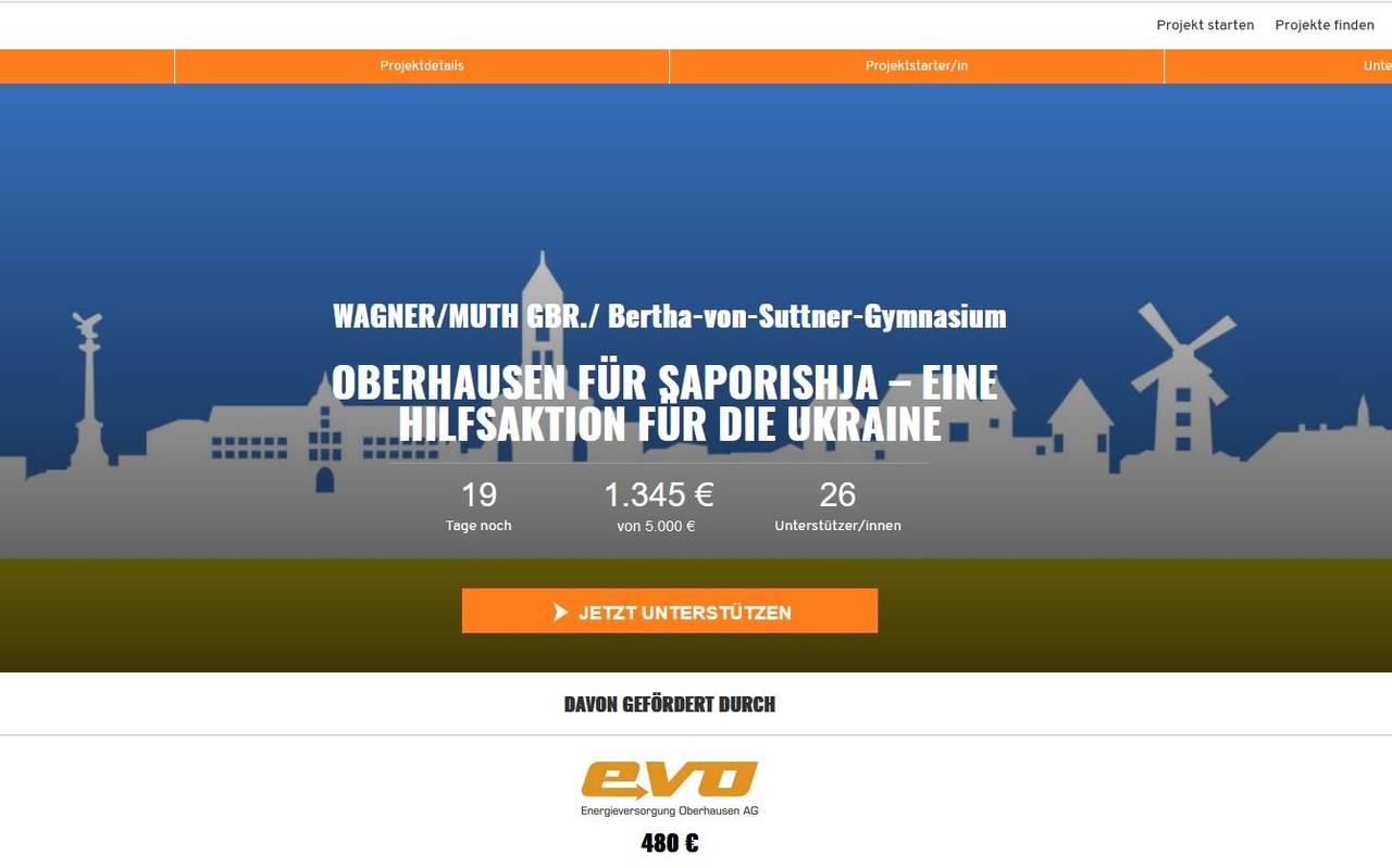Die Energieversorgung Oberhausen hat wie angekündigt auf ihrer Plattform "Oberhausen Crowd" ein Hilfsprojekt für die Ukraine gestartet. Geld soll eingesammelt werden für Oberhausens Partnerstadt Saporishja.