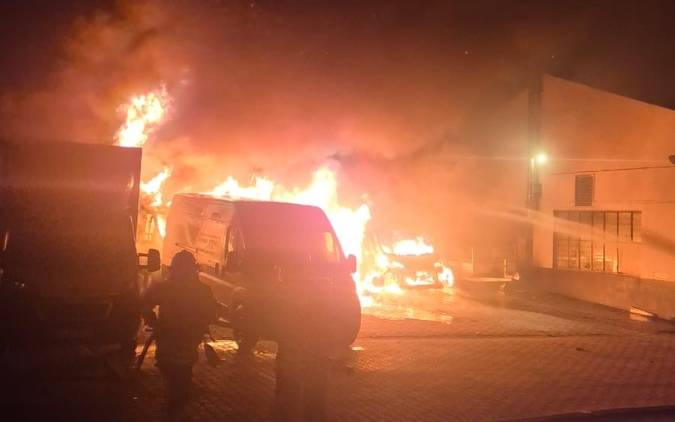 Die Transporter standen laut Feuerwehr auf einem Firmengelände. Die Polizei ermittelt jetzt die Brandursache - Brandstiftung kann sie nicht ausschließen.