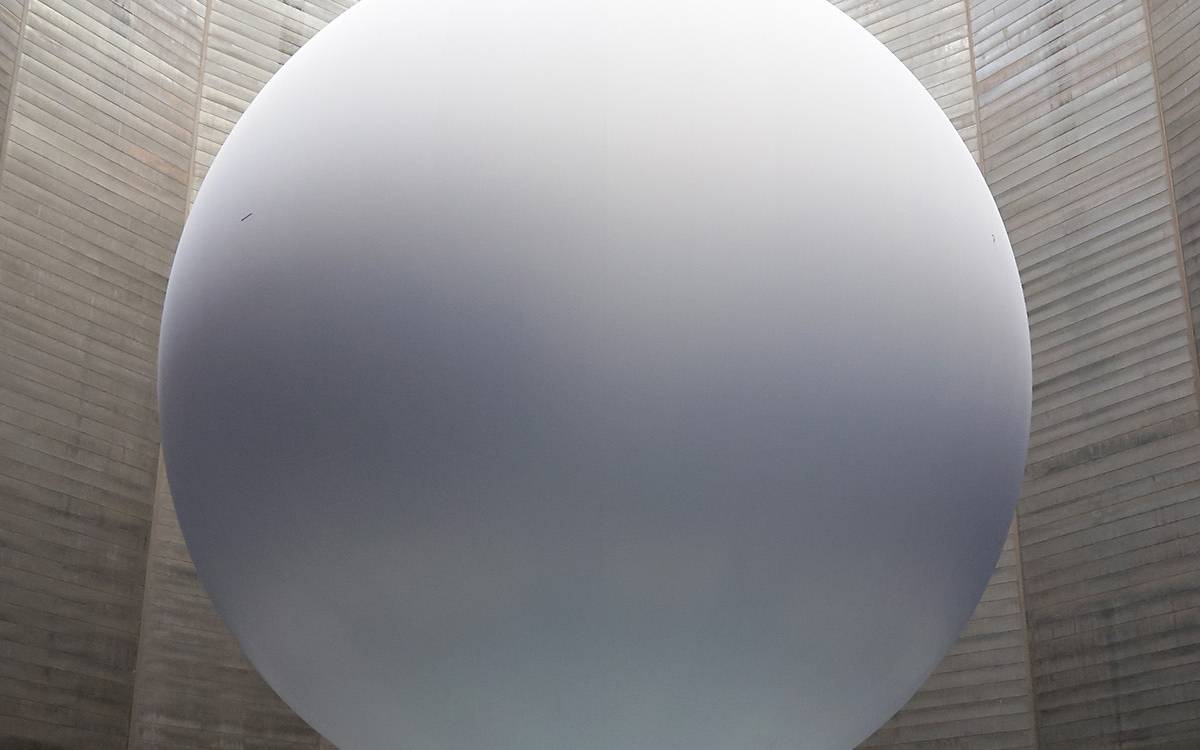 Im Oberhausener Gasometer ist gerade die riesige Erdkugel wieder unter die Decke gehängt worden. Sie zählt zu den Highlights der neuen Ausstellung "Das zerbrechliche Paradies", die im Sommer starten soll.