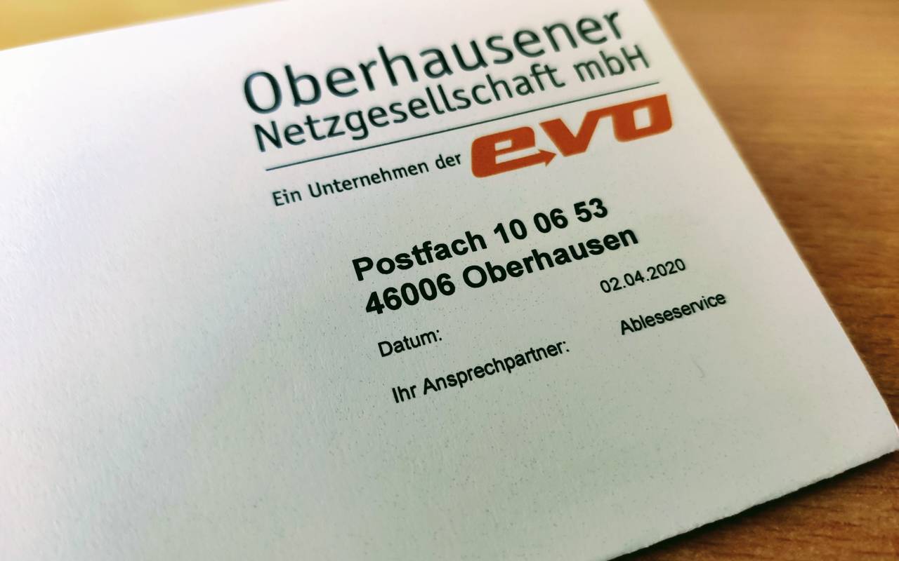 Auch jetzt im Lockdown sind Mitarbeiter der EVO unterwegs und lesen die Zählerstände ab. Darauf weist der Oberhausener Energieversorger aktuell hin. Auch notwendige Wartungsarbeiten werden weiter durchgeführt.
