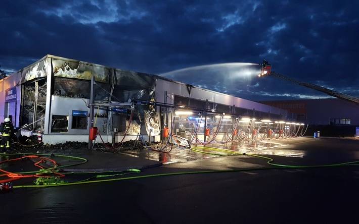 Der Brand war in einem Technikraum ausgebrochen und hatte schon auf das Dach der Waschanlage übergegriffen, sagt die Feuerwehr. Sie konnte verhindern, dass die Flammen auch noch den Einfahrtbereich zerstören. Nach rund einer Stunde war das Feuer unter Kontrolle und etwas später gelöscht. Eine Brandwache war noch bis halb zwei vor Ort. Die Polizei ermittelt wegen der Brandursache.