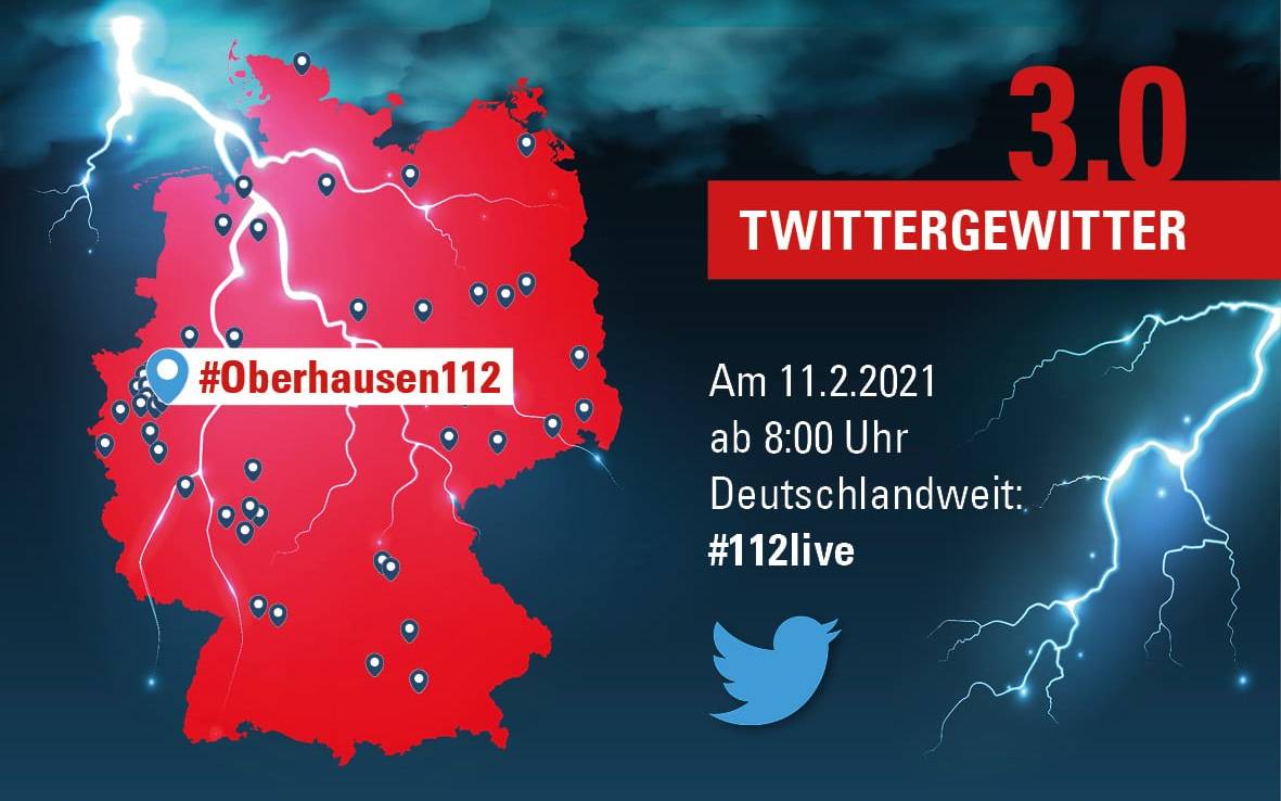 Die Feuerwehr Oberhausen macht heute beim Twittergewitter mit. Anlass ist der europäische „Tag des Notrufs“. 55 Berufsfeuerwehren aus ganz Deutschland beteiligen sich. Sie twittern von 8 bis 20 Uhr live aus dem Arbeitsalltag der Einsatzkräfte.
