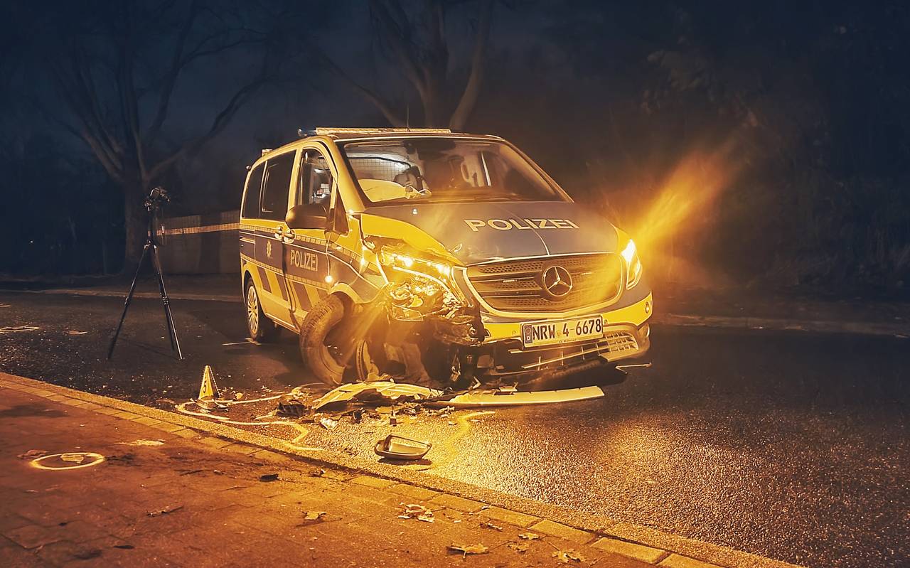 In Holten hat ein Autofahrer mehrere Streifenwagen gerammt und einen Polizisten schwer verletzt. Passiert war das am Samstagabend um kurz nach 9 Uhr, sagt die Polizei. Zeugen hatten zunächst einen Unfall an der Kreuzung Bahnstraße/Drostenkampstraße gemeldet, bei der ein Auto an einer Baustelle mehrere Absperrbarken und Lampen umgefahren hatte.