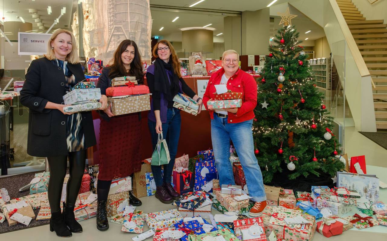 Die Wunschbaumaktion in den Bibliotheken der Stadt war ein voller Erfolg. Insgesamt 150 liebevoll verpackte Geschenke wurden jetzt dem Gerhard-Terstegen-Institut in Oberhausen übergeben.