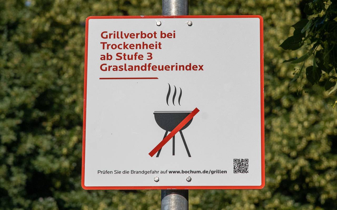 Der sogenannte Grasland-Feuerindex des Deutschen Wetterdienstes steigt in den meisten Städten bis Mittwoch auf die zweithöchste Warnstufe. In Bochum greift ein Grillverbot für öffentliche Flächen schon bei Stufe 3, in Duisburg oder Gelsenkirchen ab Stufe 4. Landesweit gibt es keine einheitliche Regelung. In vielen Städten, wie z.B. Oberhausen und Mülheim ist das Grillen in öffentlichen Parks sowieso untersagt. Nur an wenigen ausgewiesenen Stellen dürfen Grillanlagen nach Anmeldung angemietet oder genutzt werden.