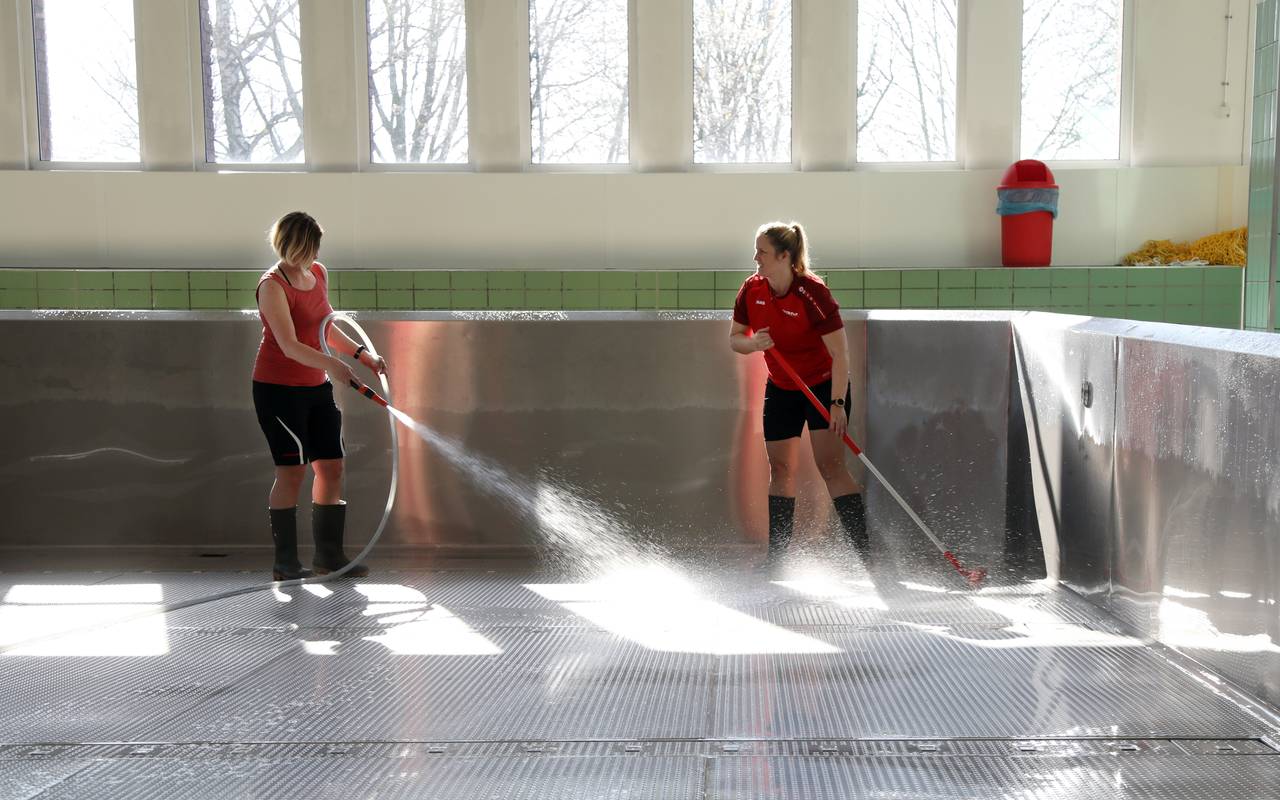 Im Hallenbad Sterkrade läuft gerade ein Frühjahrsputz. Eigentlich war das jährliche Großreinemachen für den Sommer geplant. Da das Hallenbad aber wegen der Corona-Krise geschlossen ist, hat das Oberhausener Gebäudemanagement die Arbeiten vorgezogen. Gut für uns Oberhausener, denn wenn die Corona-Pandemie überstanden ist, können wir im Sommer in Sterkrade durchgehend schwimmen gehen.