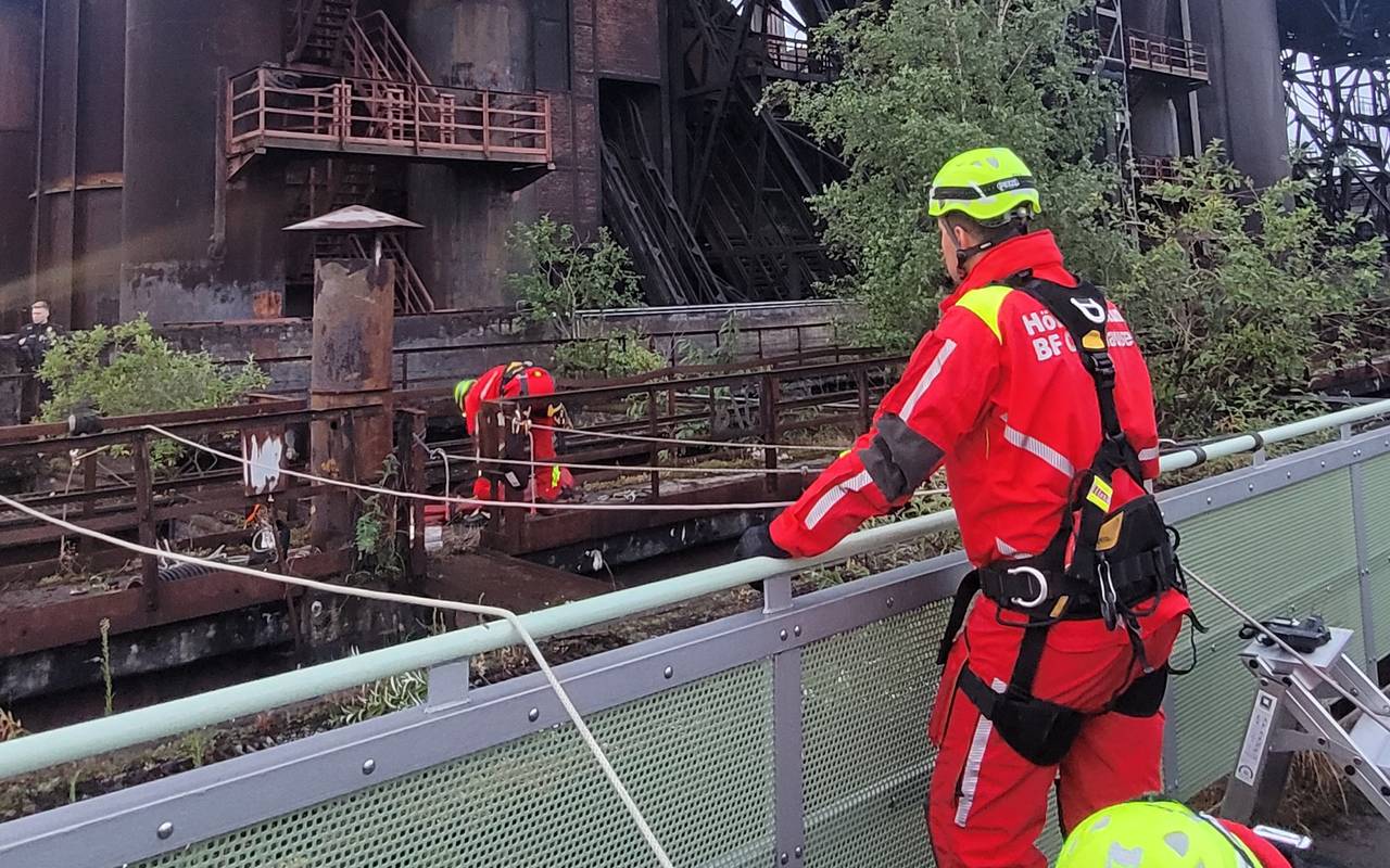 Die Oberhausener Feuerwehr hat heute am frühen Morgen (1.7.) bei einem schwierigen Einsatz in Duisburg geholfen. Die Spezialisten der Höhenrettung haben eine Person aus einem alten Kohlebunker im Landschaftspark Nord befreit.