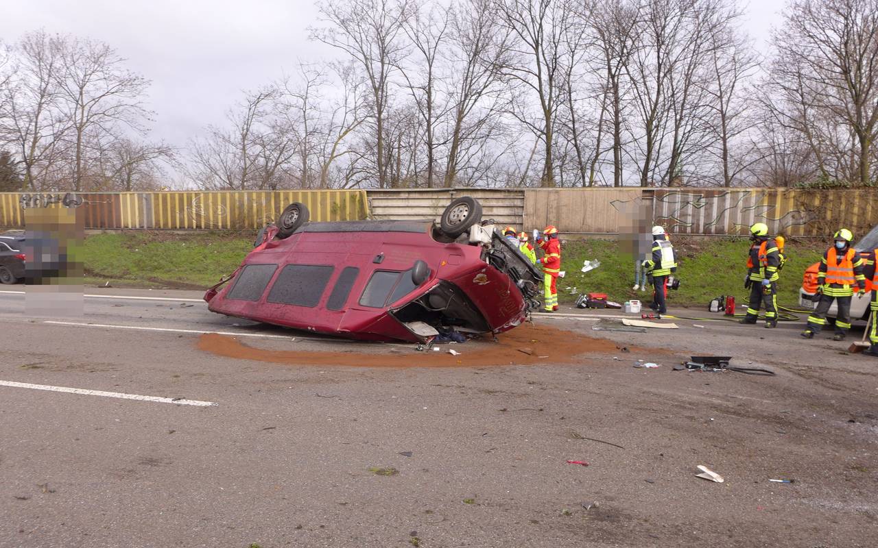 Nach den bisherigen Ermittlungen war zur Unfallzeit eine 42-Jährige aus Viersen mit ihrem Opel auf der A 42 aus Richtung Dortmund kommend unterwegs. Bei Oberhausen wurde sie von dem Fiat Ducato eines 21-Jährigen aus Duisburg beim Fahrstreifenwechsel aus bislang ungeklärter Ursache touchiert. Der Transporter geriet außer Kontrolle und überschlug sich. Die beteiligten Personen wurden zum