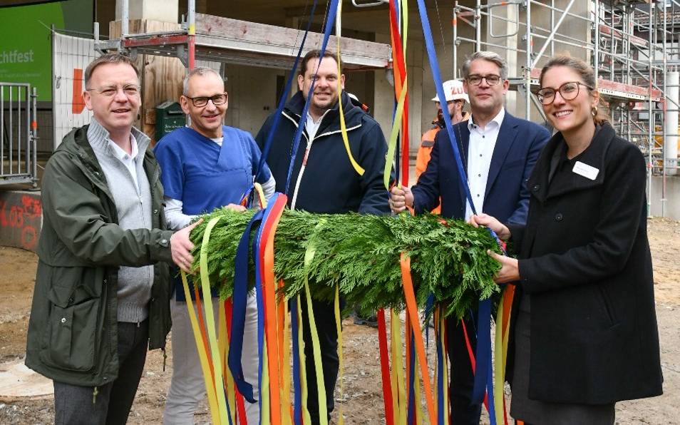 Auf dem Geländes der Helios St. Elisabeth Klinik in Styrum wird heute Mittag (31.10.) Richtfest für den Erweiterungsbau gefeiert. Mit dem dreigeschossigen Neubau will sich das Krankenhaus fit für die Zukunft machen. Auf rund 4000 Quadratmetern gibt es weitere Pflegestationen, eine Ambulanz, einen neuen OP-Bereich und moderne Patientenzimmer mit insgesamt 90 Betten.