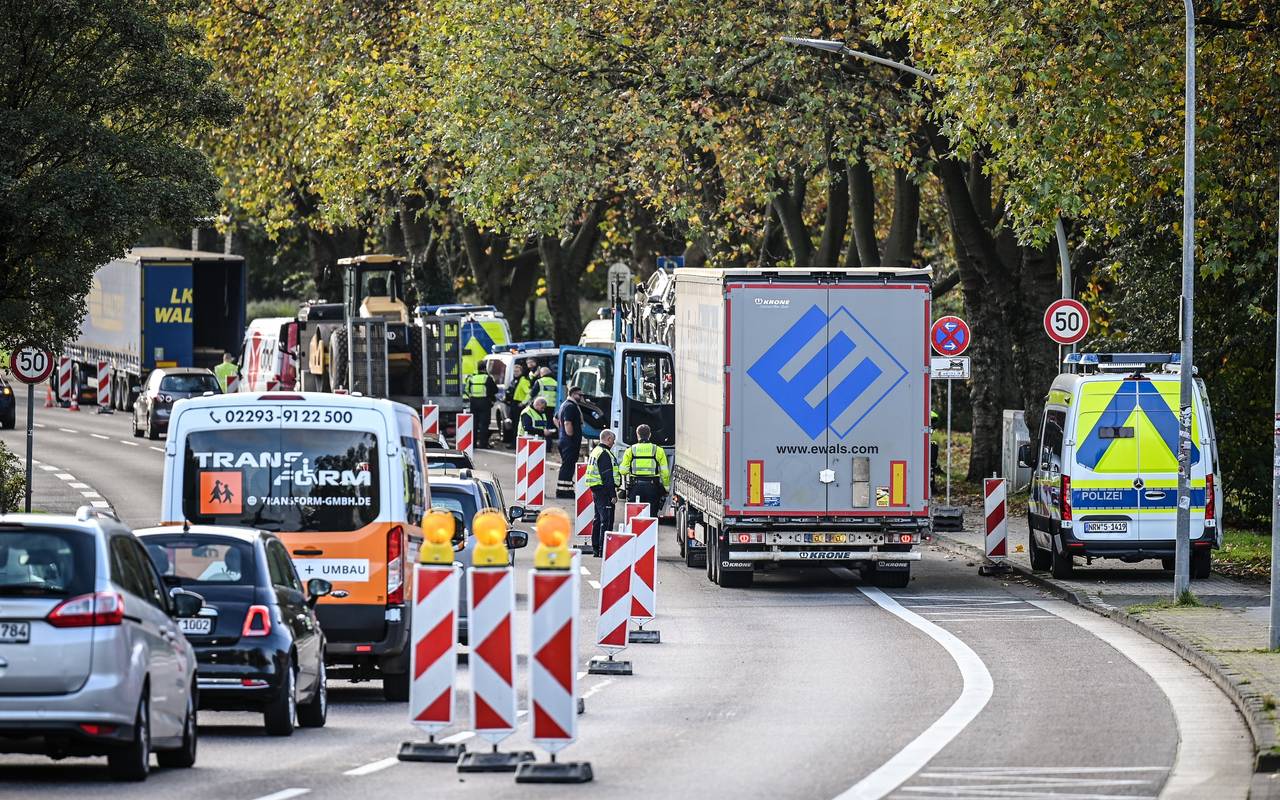 Die Oberhausener Polizei hat heute (8.11.) in großem Stil LKW kontrolliert. Dafür hat sie einen Fahrstreifen auf der Konrad-Adenauer-Allee schon am Morgen abgesperrt.