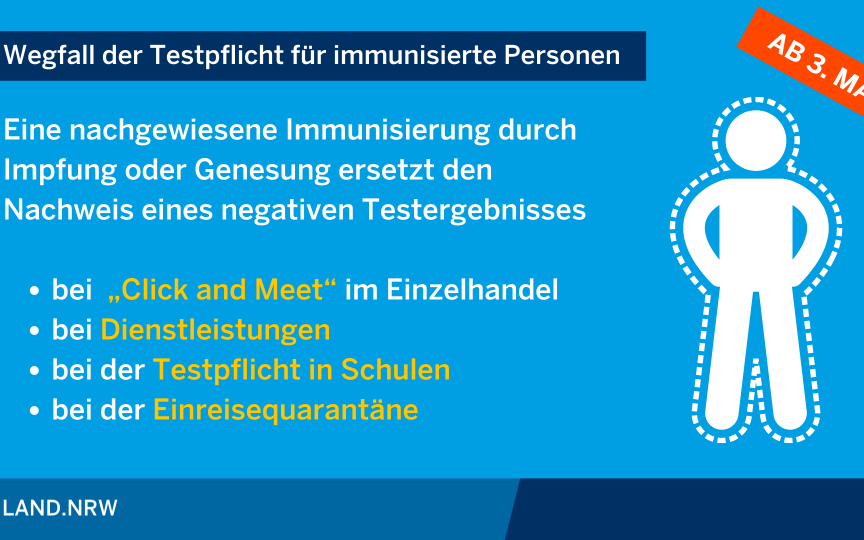 In ganz NRW gelten ab heute Lockerungen für alle, die gegen Corona geimpft sind oder schon eine Corona-Infektion überstanden haben. Das hat die Landesregierung entschieden. Damit greift die neue Regelung ab heute auch hier bei uns in Oberhausen.
