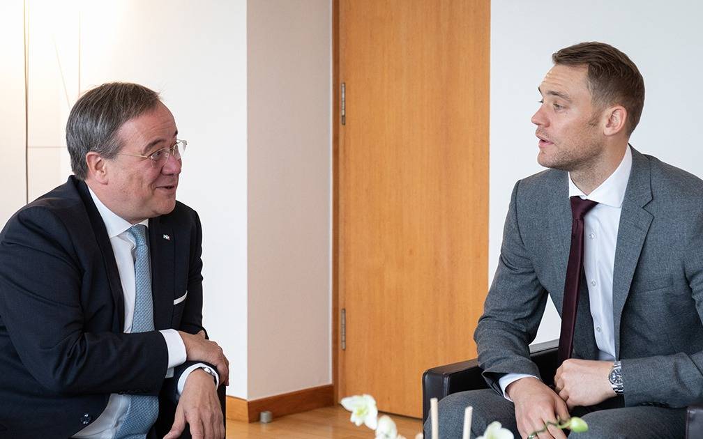 NRW-Ministerpräsident Laschet sagte: "Mit seinem sozialen Engagement gebe Manuel Neuer jungen Menschen eine neue Zukunftsperspektive und sei damit ein Vorbild für die Gesellschaft."