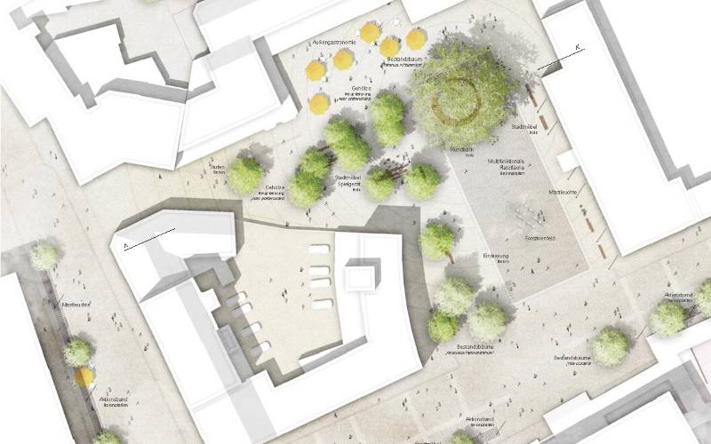 Der Platz in der Sterkrader Innenstadt soll hübscher werden. Geplant sind neben einem neuen Pflaster und Sitzbänken auch mehr Bäume und Wasserfontänen. In den letzten Wochen ist der Entwurf mit Blick auf die Nachhaltigkeit und den Klimaschutz ergänzt worden, sagt die Stadt. Unter anderem wird es für die Bäume unterirdische Wasserspeicher geben, die sowohl die Folgen von Hitze als auch Starkregen abmildern sollen. Für die Umgestaltung des Kleinen Marktes fließen Fördergelder nach Oberhausen. Rund 1,1 Millionen Euro hat die Bezirksregierung zugesagt.