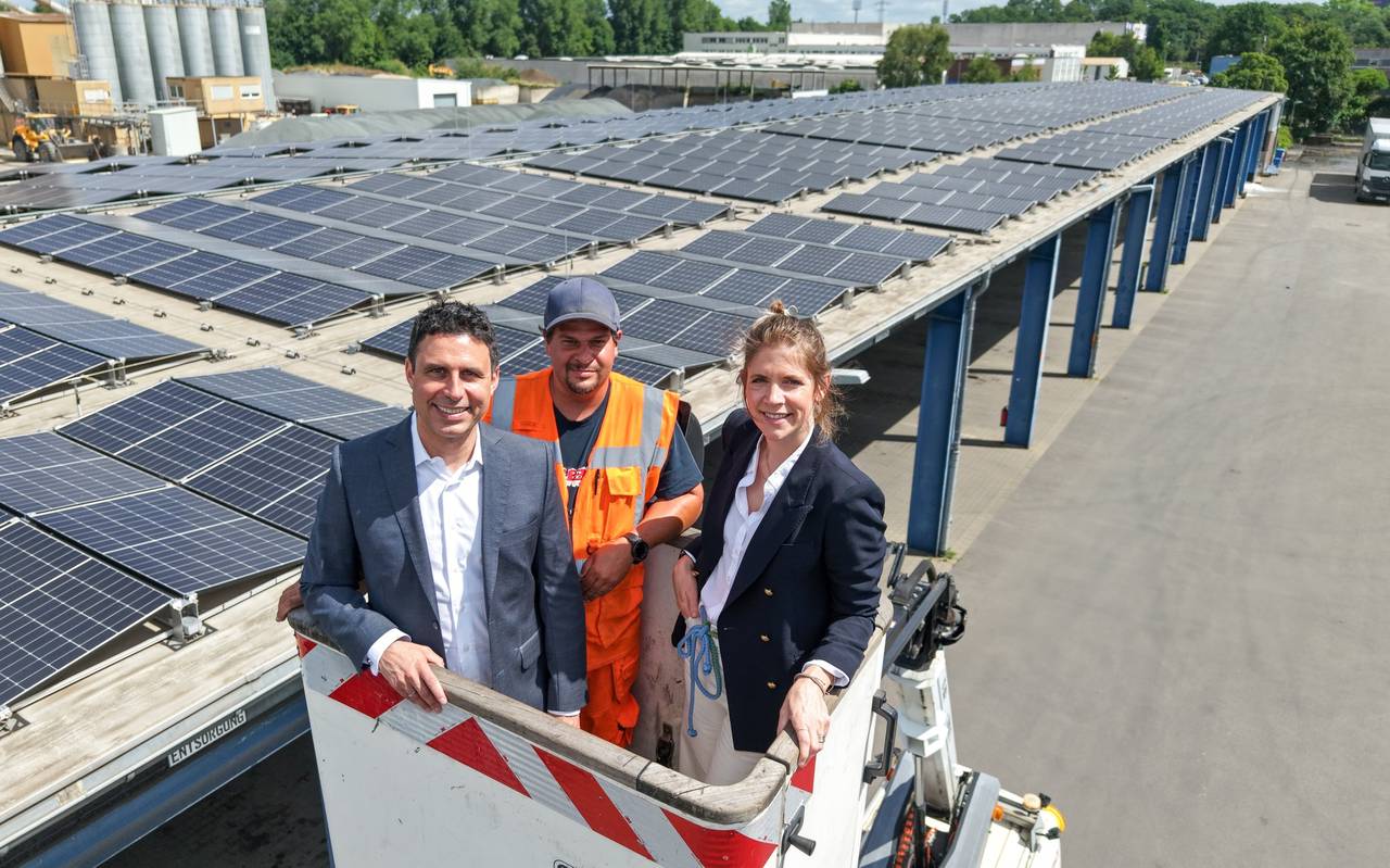 In Oberhausen erzeugt ab sofort eine weitere große Photovoltaik-Anlage grünen Strom. Auf dem Gelände der WBO sind 936 Solarmodule installiert. evo und WBO haben die Anlage jetzt gemeinsam eingeweiht.