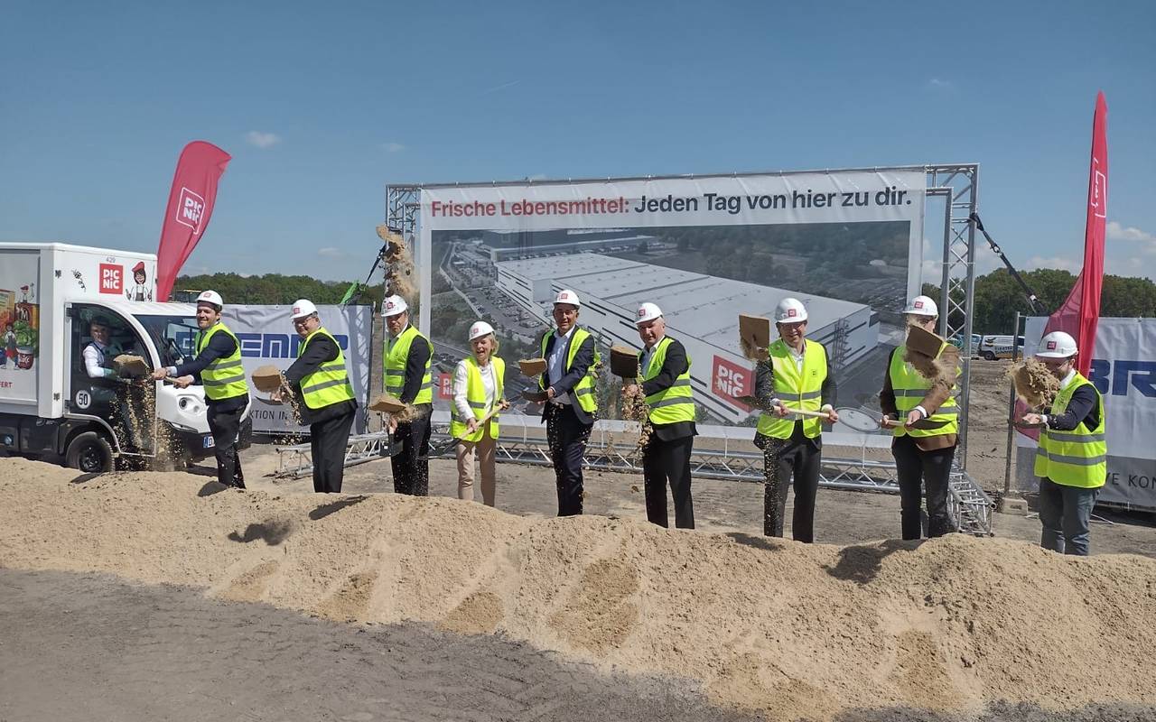 Der Online-Supermarkt Picnic hat heute den Spatenstich für sein neues Lager gesetzt. Es entsteht direkt neben dem Edeka-Zentrallager auf dem Waldteichgelände.