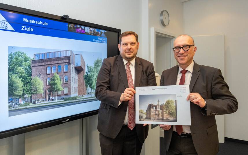 Rund 12,5 Millionen Euro werden für den Umbau veranschlagt. Zurzeit ist die städtische Musikschule im Lipperfeld. Pläne, die Schule ins historischen Rathaus in Sterkrade zu holen, gibt es schon seit vielen Jahren. Nach eine Machbarkeitsstudie mit positivem Ergebnis werden die Pläne nun konkreter. Das alte Rathaus soll barrierefrei zugänglich werden. Geplant ist ein eingeschossiger Anbau und ein neuer Saal auf dem Dach, der 100 Menschen Platz bieten soll. Außerdem soll es darin ein Tonstudio und eine kleine Bühne geben. Die Stadt will für den geplanten Umbau Fördergelder beantragen.