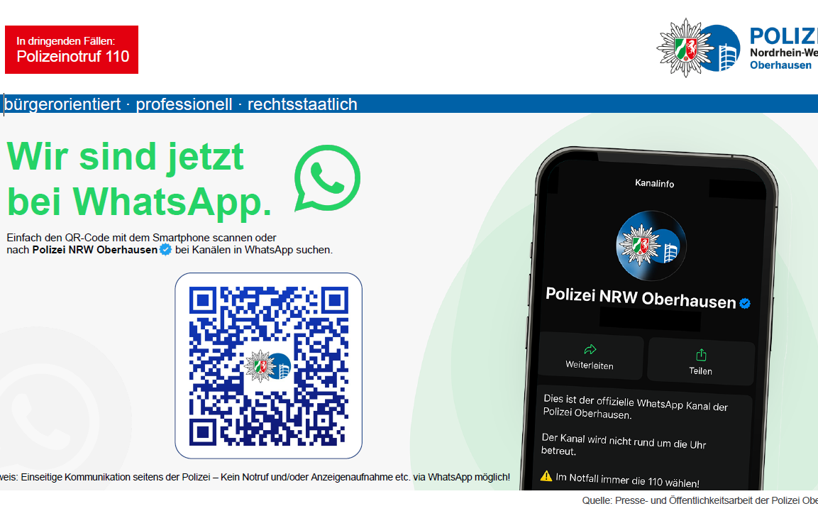 Polizei Oberhausen: WhatsApp-Kanal gestartet