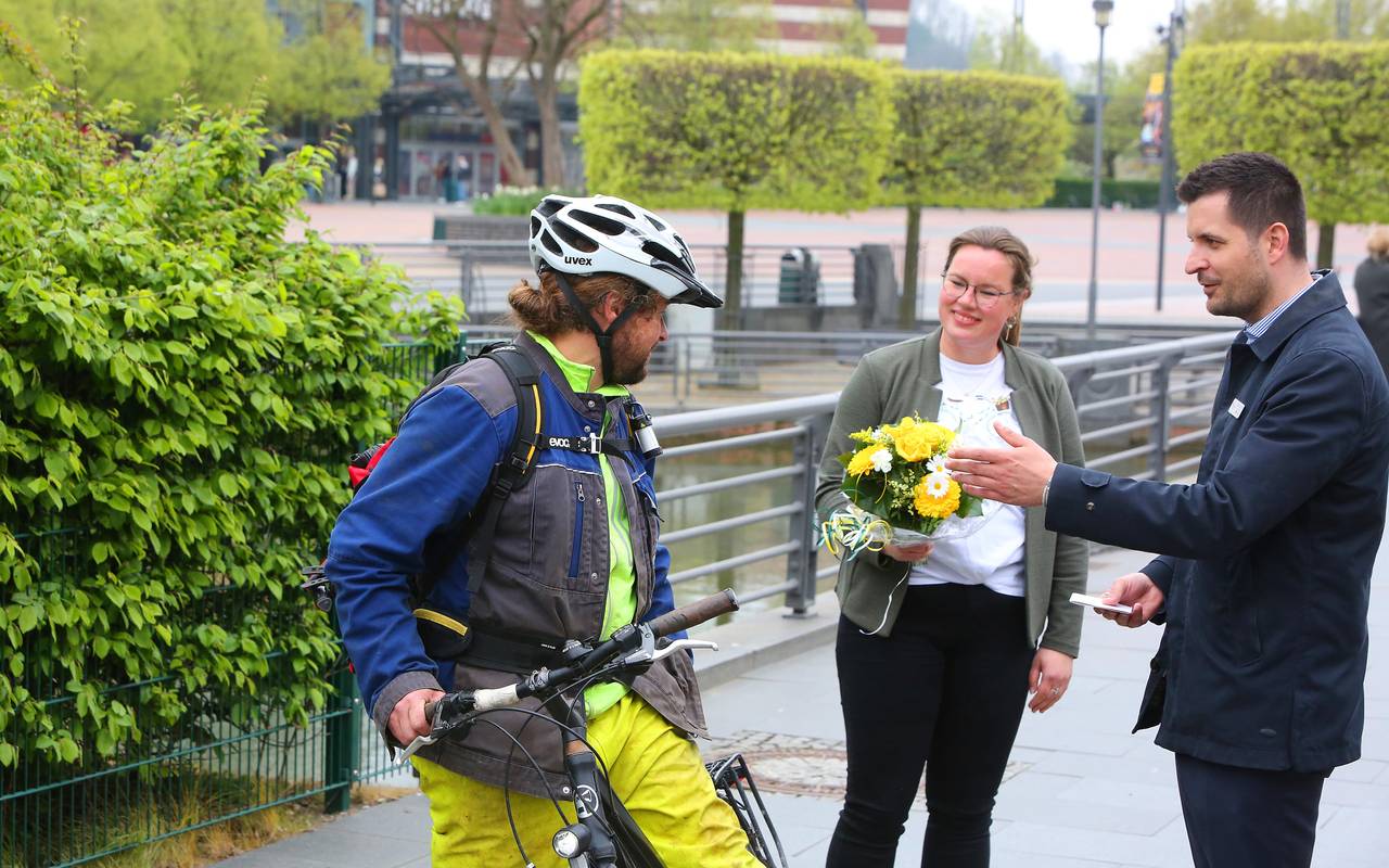 Der Radfahrer aus Bottrop bekam einen Blumenstrauß und einen Fahrradrucksack überreicht. Seit 2017 werden die Radfahrer automatisch gezählt. Jeden Tag sind es im Schnitt 300 bis 400 Radler, die hier vorbei kommen. An Wochenende sind es teilweise deutlich mehr. Der Weg gilt als besonders gut ausgebaut und an andere Radwege angeschlossen. Bei uns in Oberhausen gibt es noch drei weitere Zählstellen, an der HOAG-Trasse, am Grünen Pfad an der Skagerrakstraße und an der Richard-Wagner-Allee. Hier geht es zu den Daten.