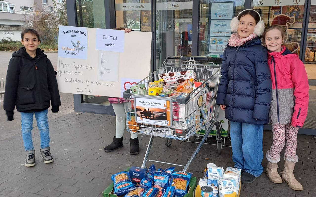 Sie haben die Kunden gebeten, "ein Teil mehr" zu kaufen und in den Einkaufswagen der Rolandschule zu legen. Dabei kamen laut Schulleitung fünf Autoladungen Lebensmittel und 170 Euro in bar zusammen. Gestern Morgen haben die Schülerinnen und Schüler die Spenden an den Verein "Solidarität im Ruhrgebiet" übergeben. Der Verein engagiert sich in der Obdachlosenhilfe. Die Rolandschule stellt immer wieder Aktionen auf die Beine, um den Kindern schon früh ein positives Bild von demokratischen Prozessen und sozialem Engagement zu vermitteln, heißt es.
