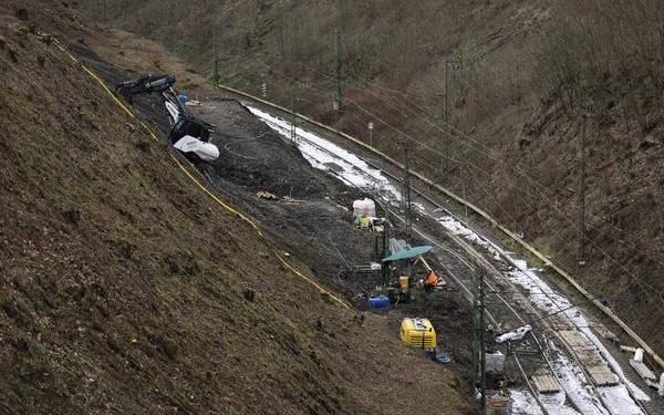 Durch wochenlange Regenfälle ist ein Hang bei Ratingen-Hösel ins Rutschen geraten. Laut Untersuchungen der Bahn, sind die Schäden größer als anfänglich gedacht. Es seien Felsplatten in Bewegungen geraten, die Gleise nach oben gedrückt- und Schienen verborgen haben. Auch Weichen und Teile der Oberleitung seien zerstört worden.