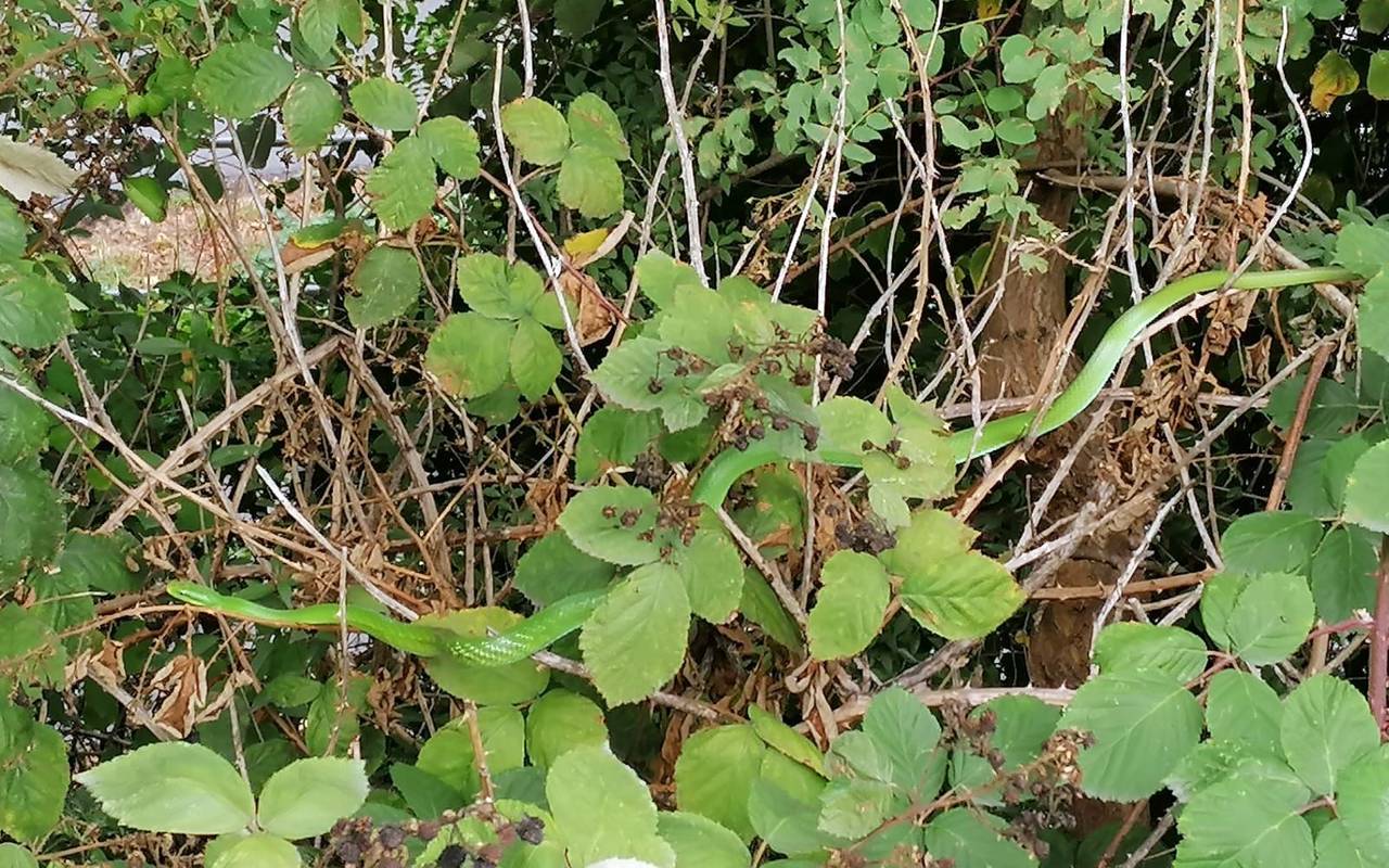 Die Experten vom Terrazoo in Rheinberg konnten zunächst anhand eines Fotos nicht bestimmt sagen, ob die Schlange gefährlich ist. Es könnte eine hochgiftige grüne Mamba oder eine harmlose Strauchnatter sein. Bis die Mitarbeiter eintrafen, sperrte die Polizei den Bereich komplett ab. Vor Ort stellte sich dann heraus, dass es sich bei dem Tier um eine ungiftige vietnamesische Strauchnatter handelt. Wo die Schlange herkam ist unklar. Sie hat jetzt ein neues Zuhause im Terrazoo gefunden.