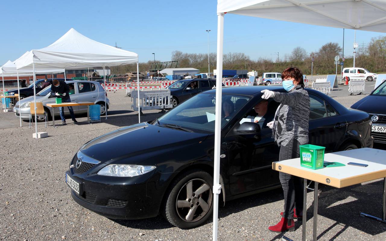 Die Ärzte aus Oberhausen, Mülheim, Essen, Duisburg und dem Kreis Wesel waren wegen des zu erwartenden Andrangs extra zu verschiedenen Uhrzeiten herbestellt worden. Trotz mehrerer Fahrspuren, auf denen die Ärzte vorfahren und sich registrieren lassen mussten, kam es zu langen Autoschlangen. Jeder bekam ein fertiges Paket mit 20 Masken des gehobenen Schutzstandards und 100 des einfachen. Wegen der Masken-Knappheit war die Zuteilung nur für Ärzte bestimmter Fachrichtungen gedacht - darunter Allgemeinmediziner, Internisten und Hals-Nasen-Ohren-Ärzte.