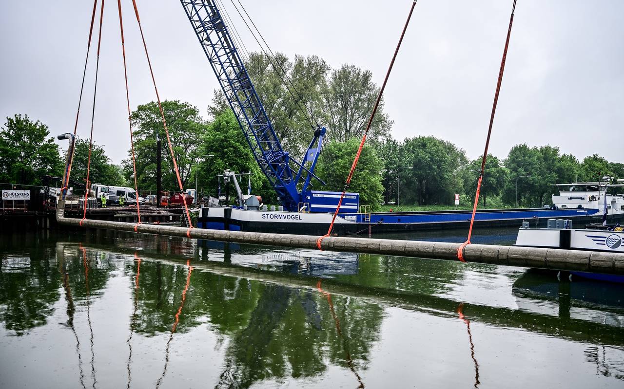 Spektakuläre Arbeiten: Düker im Kanal versenkt