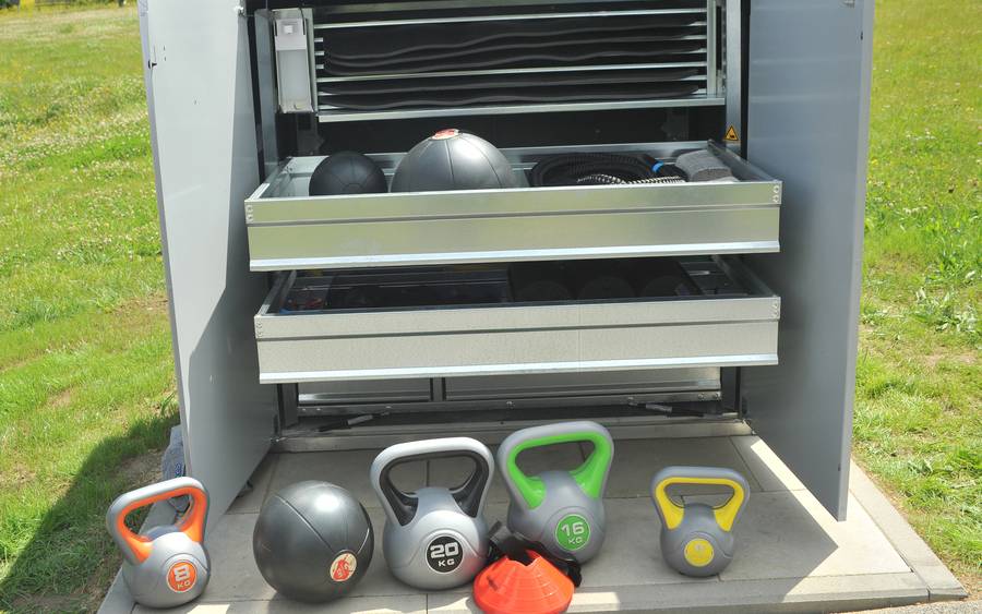 In Oberhausen sollen wir uns bald kostenlos Sportgeräte ausleihen können. Unsere Stadt will eine sogenannte Sportbox aufstellen. Dabei handelt es sich um einen Container, den wir über eine App auf dem Smartphone öffnen können. In der Box sind Yogamatten, Medizinbälle, Pylone, Gewichte und Bänder für Kraftsport, Badmintonschläger und zum Beispiel auch eine Bluetooth-Musikbox.