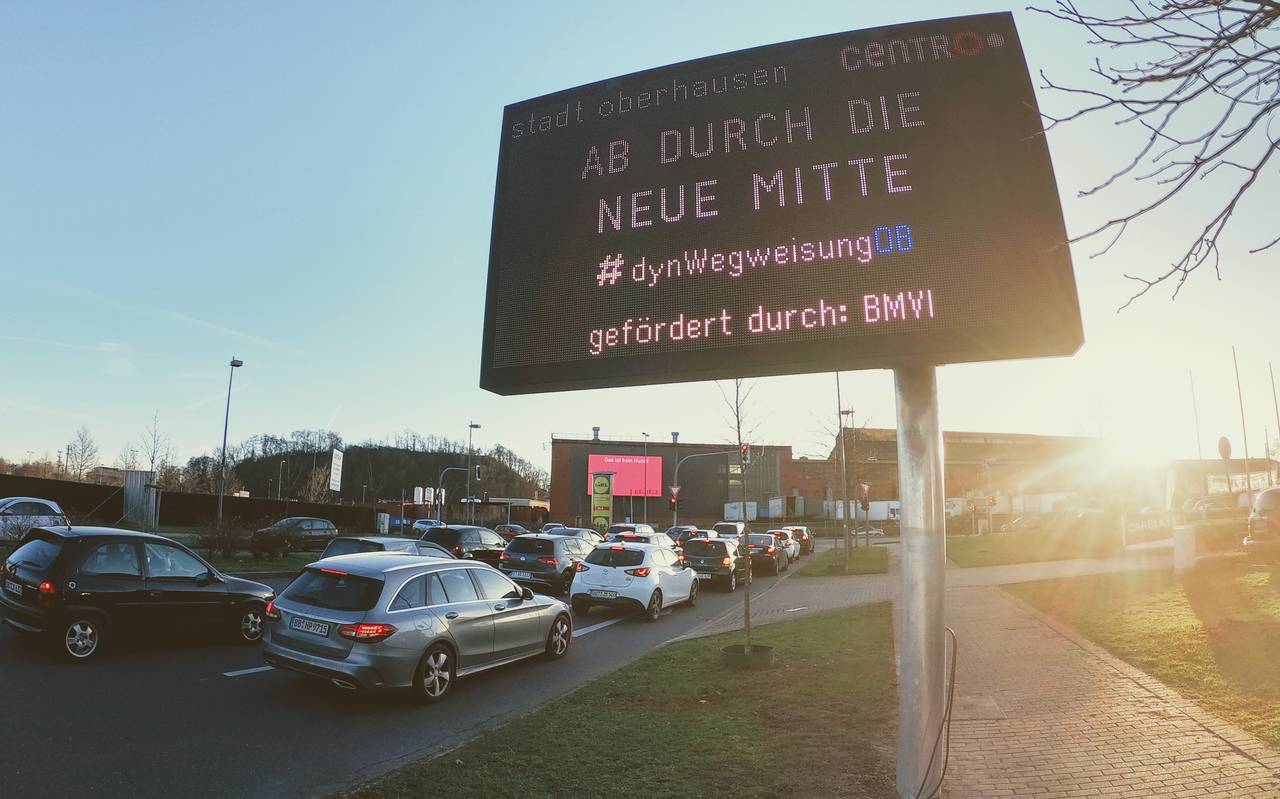 Das passiert zwischen 21 Uhr abends und 6 Uhr morgens. Es werden neue dynamische Wegweiser installiert, wie schon an der Osterfelder Straße. Sie sollen helfen, dass der Verkehr rund ums Centro besser fließt und wir möglichst nicht mehr im Stau stehen. Das Projekt wird vom Bundesverkehrsministerium gefördert. Während der Sperrung heute Abend ist eine Umleitung ausgeschildert.