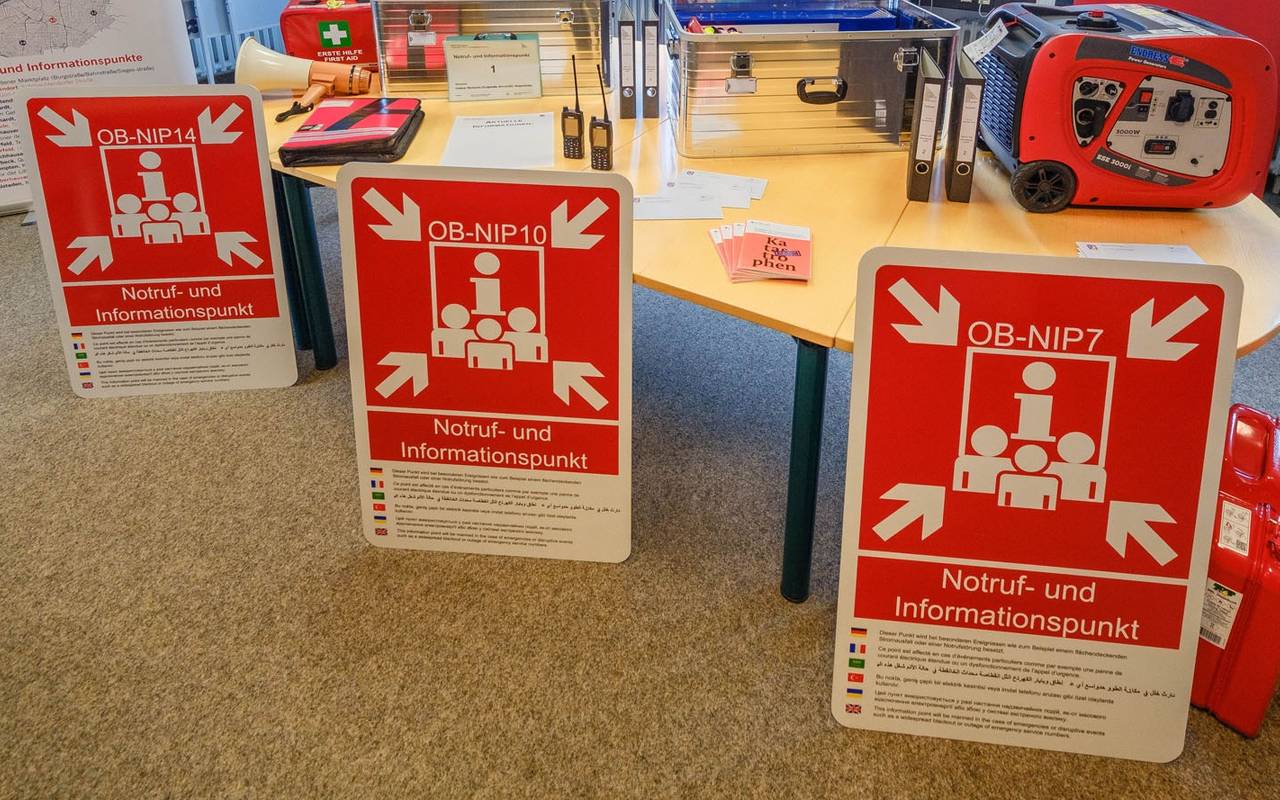 Der Ratgeber gibt Hilfe, wenn Internet, TV und Handys nicht mehr funktionieren. Bei einem sogenannten Blackout besetzen Einsatzkräfte sogenannte Notfallinformationspunkte, die quer durchs Stadtgebiet verteilt sind. Hier können wir Oberhausener z.B. Notrufe absetzen. An vier sogenannten Leuchttürmen werden nach vier Stunden ohne Strom können Vermisste gemeldet oder auch Erste Hilfe geleistet werden. Der Flyer wird jetzt an alle Haushalte verteilt und steht auch hier zum Runterladen bereit.