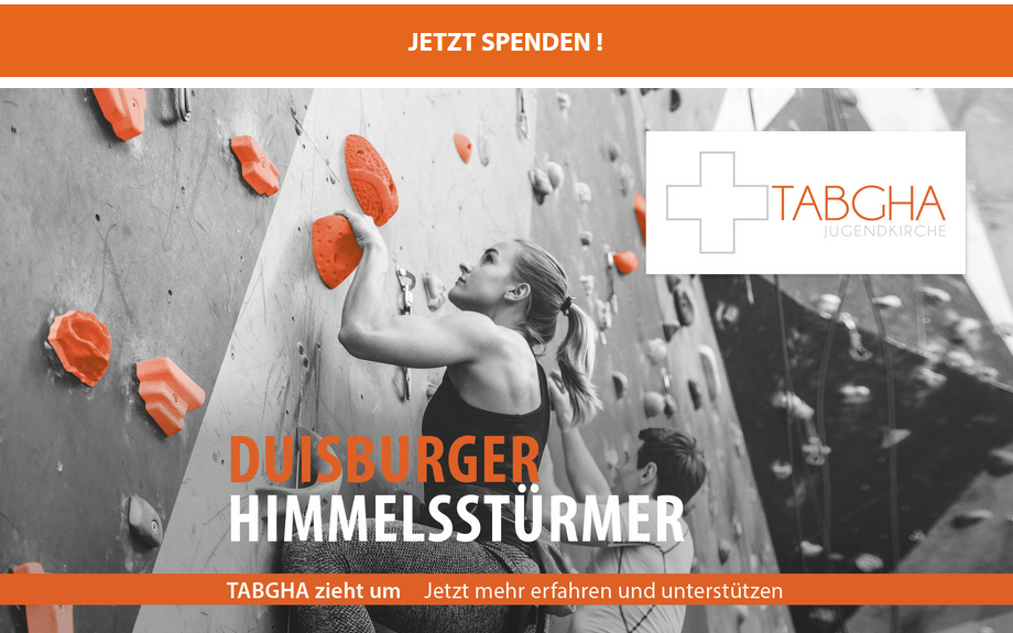 Tabgha plant außerdem eine Kletteranlage im Kircheninneren. Die Kosten für die Kletterwände rechts und links im Kirchenturm liegen aber im fünfstelligen Bereich, so die Organisatoren. Ein entsprechender Spendenaufruf hat noch nicht genügend Geld dafür eingebracht. Nach 20 Jahren musste Tabgha als Jugendkirche im Bistum Essen unter anderem aus Kostengründen den Standort Oberhausen aufgeben. Am 6. Dezember wurde der letzte Gottesdienst in der Fichtestraße in Buschhausen gefeiert.