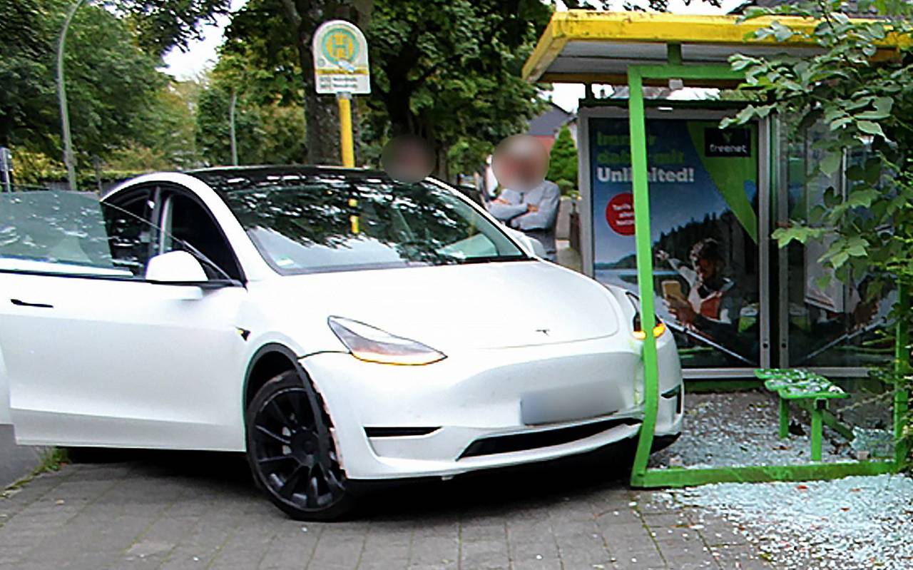 Unfall: Tesla rammt Bushaltestelle