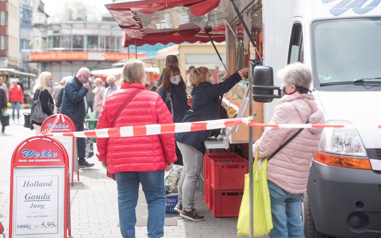 Auf den Wochenmärkten in Oberhausen gilt Maskenpflicht. Darauf weisen Ordnungsamt und Polizei jetzt noch mal hin. In letzter Zeit sind immer mehr Marktbesucher, aber auch Händler nachlässig geworden, heißt es.