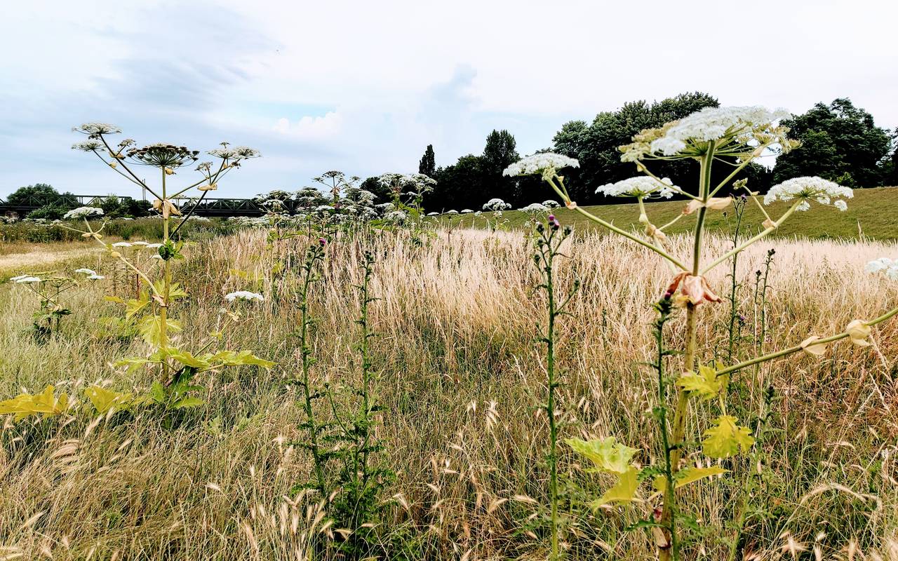 In den Ruhrwiesen in Alstaden macht sich zurzeit der hochgiftige Riesenbärenklau breit. Er kann bei Berührung schwere Verbrennungen auslösen.