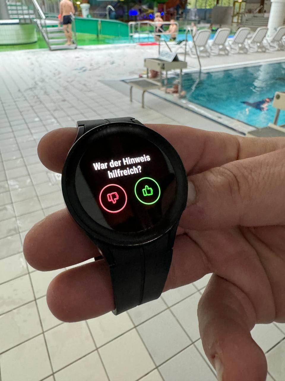 In Gummersbacher Schwimmbad "Gumbala" können ab sofort Menschenleben dank künstlicher Intelligenz (KI) gerettet werden. Badmitarbeiter erhalten auf Armbanduhren per Vibration und akustisch mit exakter Positionsangabe einen Alarm, wenn es in einem der Schwimmbecken etwas Unregelmäßiges gibt. Den Angaben der Stadtwerke Gummersbach zufolge kann das sowohl eine auf oder im Wasser treibende Person sein oder auch ein wild gestikulierender Schwimmer, der in Panik geraten ist. Kameras überwachen jedes Schwimmbecken, Sekunden später soll dann der Alarm ausgelöst werdem.