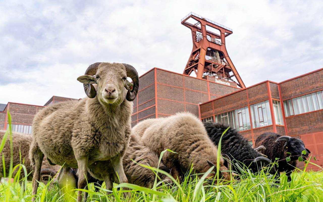 Schafe statt Rasenmäher? Das testet die Stiftung Zollverein aktuell auf dem Zechen- und Kokereigelände. Zwölf Schafe sollen hier so gut es geht Rasenmäher und Dünger ersetzen.