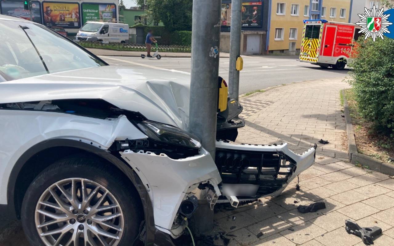 Laut Polizei ist der Mann mit einem anderen Auto zusammengekracht und gegen eine Ampel geprallt. Zwei Personen haben sich dabei verletzt. Zur Unfallursache kann die Polizei aktuell noch nichts sagen.